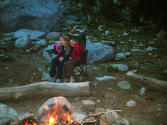 After a LONG day of many miles and a lot of elevation gain, a good dinner which included the trout we caught, and a nice fire, capped off the evening. After a hike like that, there is nothing better than a little chair snuggling in front of a roaring campfire. Girls Just want to have fun!