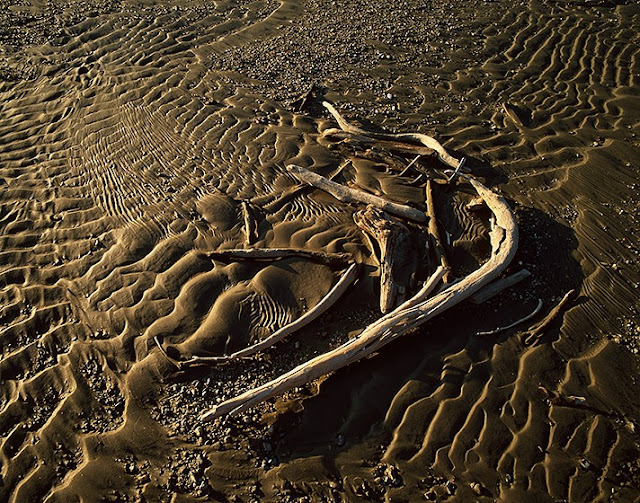 Because the Stikine river volume grew during the warmth of the day, and then shrank in the cool of the night, the immediate shoreline was regularly transformed. I walked those banks in the early mornings before the flow would come up, and found many graphically beautiful designs created by the current, and things it deposited.